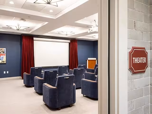 Theaters serve an important purpose in senior living, as they give residents a fun activity that they can experience in the comfort of their own community. It’s fun to watch a film or a live performance with a group of friends, on a date or alone. For seniors who are more active, they can also become part of the theater “staff” by acting in live shows, working the snack bar, or directing residents to their seats. Theaters in senior living should be outfitted with comfortable seating that has cup holders and attached trays.