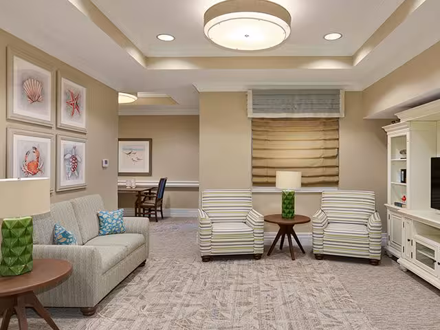 When considering design for memory care environments architects should take into consideration dedicated care spaces within Memory Care “neighborhoods.” These include common spaces for group activities, dining and therapy areas, all of which encourage individuals to leave their apartments and socialize with other residents. With supervision residents can prepare their favorite recipes. Cooking meals in view can help with cueing before and during the meal and help keep Sundown Syndrome residents occupied during a typically restless time period.