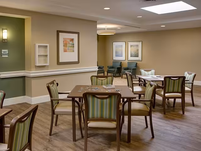 Activity spaces for seniors with dementia must be safe spaces – free of sharp objects and as uncluttered as possible. People with dementia may have difficulty with visual perception. Good lighting, with as little glare as possible, is preferred. Seating and tables should be used that are made with Alzheimer’s resident’s in mind. Ergonomic seating with warm, wood-like and pick-proof finishes will insure residents are seated at the proper work heights and not distracted by disturbing textures.