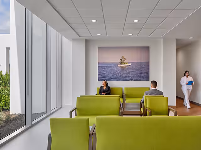 A superior patient and guest experience begins at the lobby and other wait spaces within the hospital. Tired and worn-out furniture is off-putting and makes visitors question the level of care. Chipped and scuffed chair legs and arms are the introduction to many hospitals, and we all know first impressions are lasting. In this blog, I am going to show you three pieces of furniture (Valdina Flex – Short Back, Valdina Bariatric, and Valdina Center Linking Table) in three different types of wait spaces providing stunning and welcoming looks. (Kwalu furniture seen in the images from the Sabanera Health Center, winner of the HCD Healthcare Environment Award)