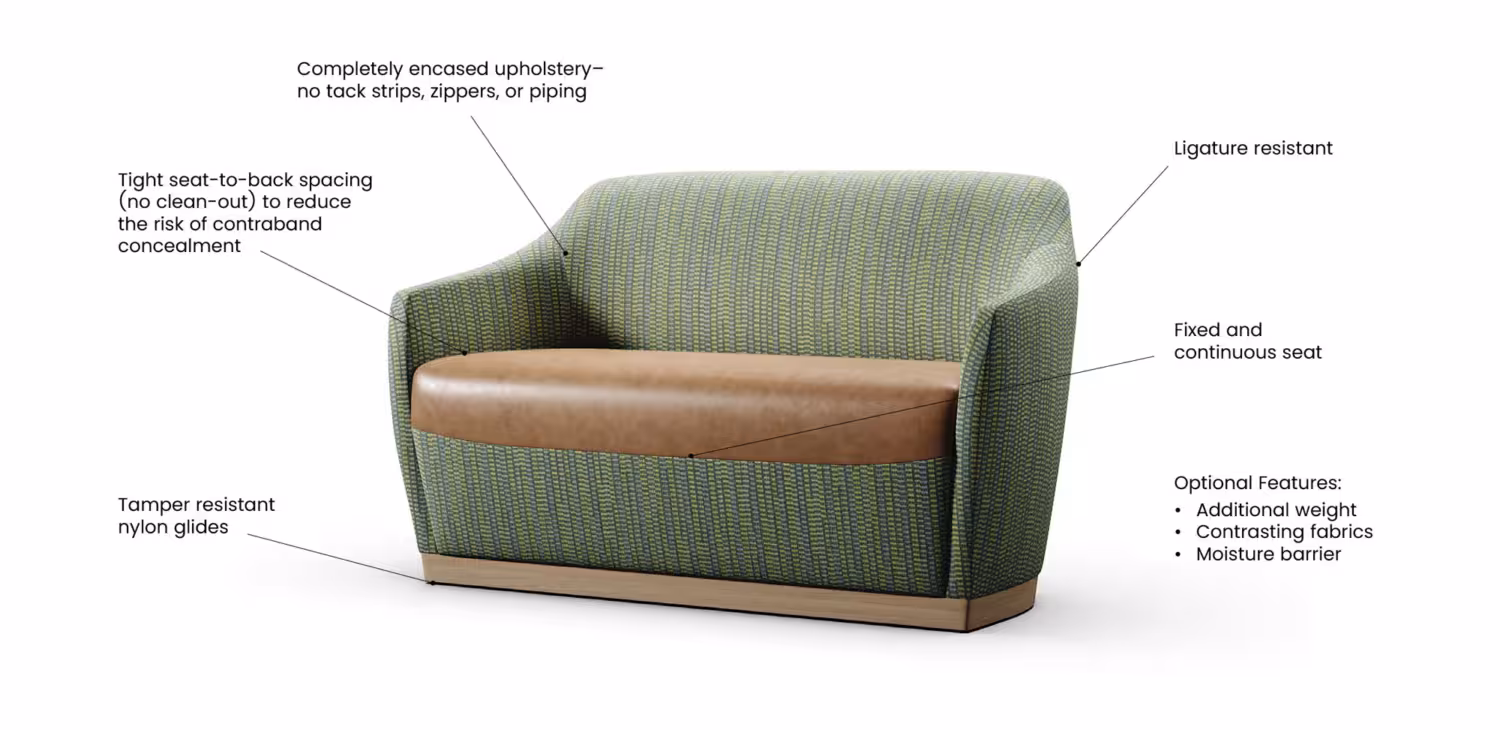 Available as a lounge chair, loveseat, and sofa, Cori embodies the balance between security and serenity that defines exceptional behavioral health design.