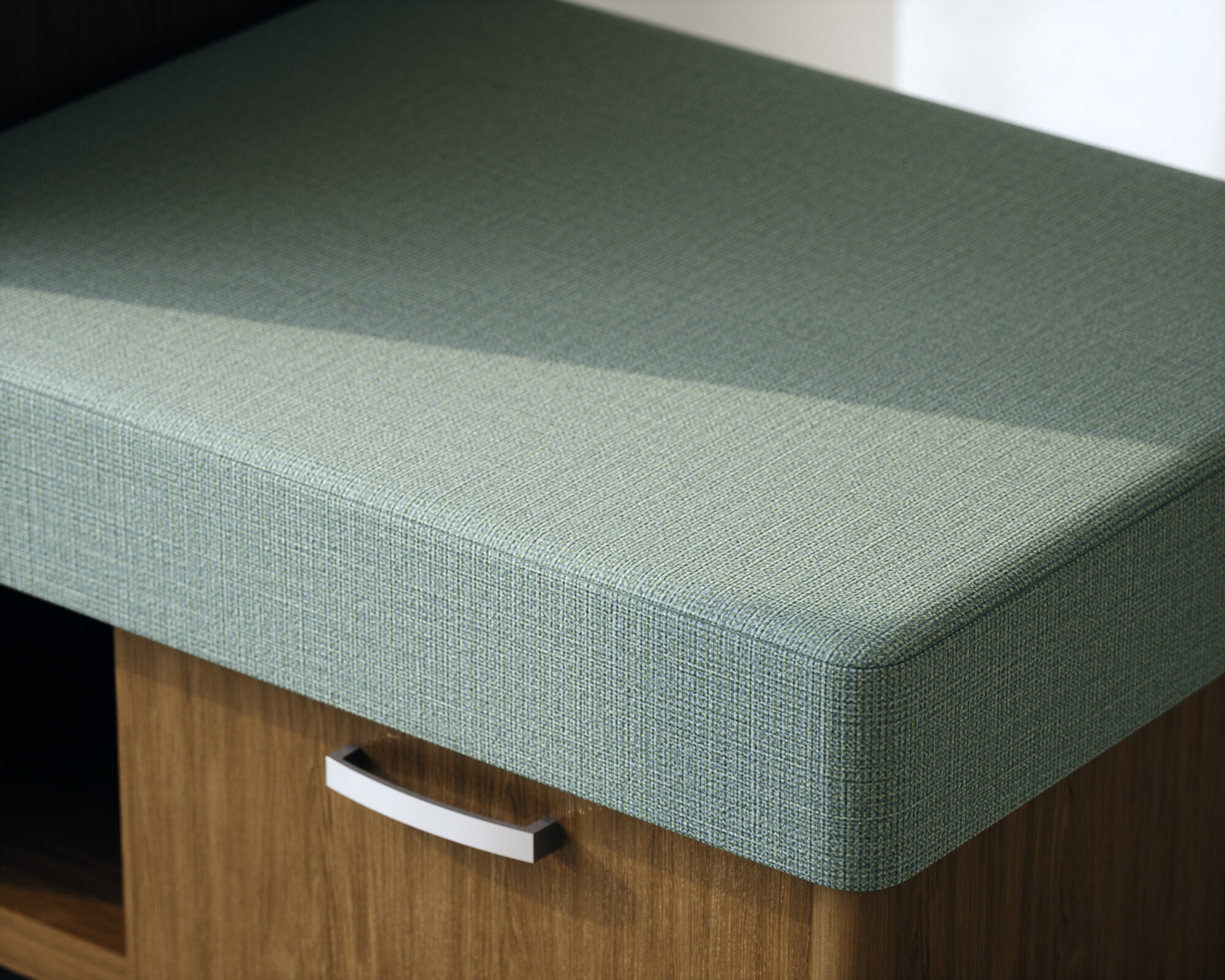 A bedside pouf offers families a place to stay close. Mobile cabinets and floating tops make cleaning faster and safer for staff. Protea™ surfaces—non-porous, durable, and easy to sanitize—stand up to constant use without losing their warmth. From patient rooms to treatment areas, Ethan blends aesthetic simplicity with lasting performance, helping healthcare teams, patients, and families feel cared for in the moments that matter most.
