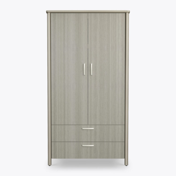 The Kwalu Ethan collection, designed by Brian Graham, exemplifies a seamless blend of form and function, where minimalist design meets the complex needs of healthcare environments. With its soft edges and understated elegance, the collection creates a serene and cohesive atmosphere conducive to healing and comfort. The intuitive design of the Ethan case goods ensures ease of use, featuring practical storage solutions including a wardrobe with a bench, a bench, several bedsides, including one with a mobile pouf, chests and a mobile cart. The collection combines Kwalu’s durable Protea™ and Protea™ Fusion surfaces that withstand the rigors of healthcare settings.