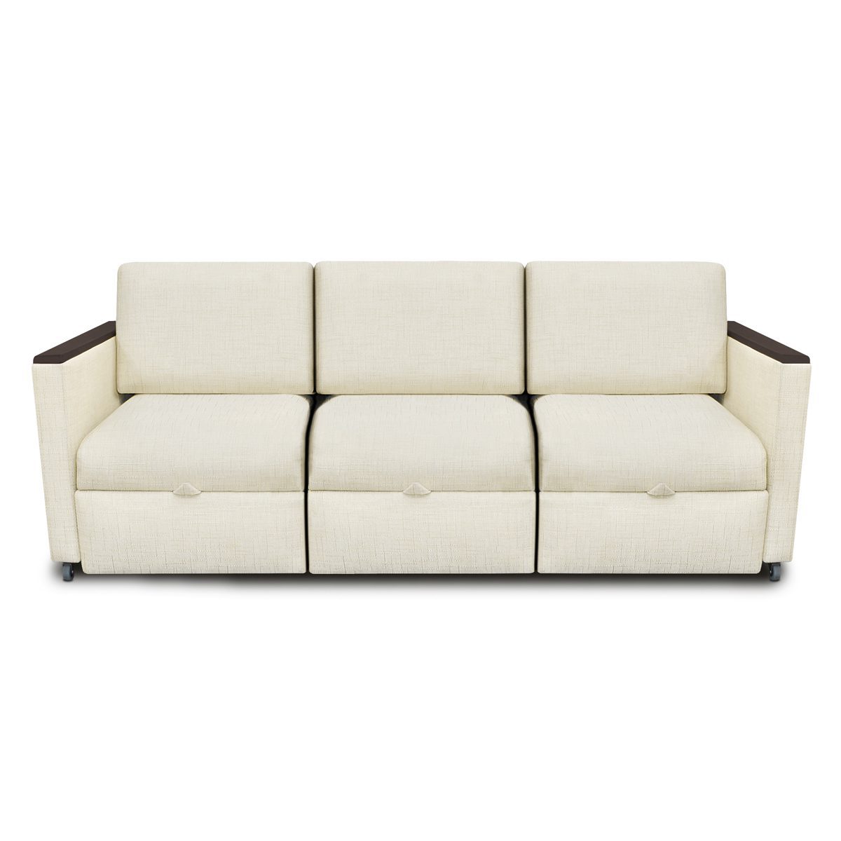 For the ultimate in comfortable seating and restful sleeping turn to the Carrara Sleepovers. Thick cushions are the foundation of the sleepers. The Pullout Sleepover Lounge becomes a twin; the Love Seat becomes a twin or double easily with a pull. The versatile Sleepover Sofa has a trio of pulls which turn each seat into a twin, a double or a queen-sized sleeping option. You can’t pull the sleepers out too far. Formed and fitted solid surface arm caps are available and are optional.