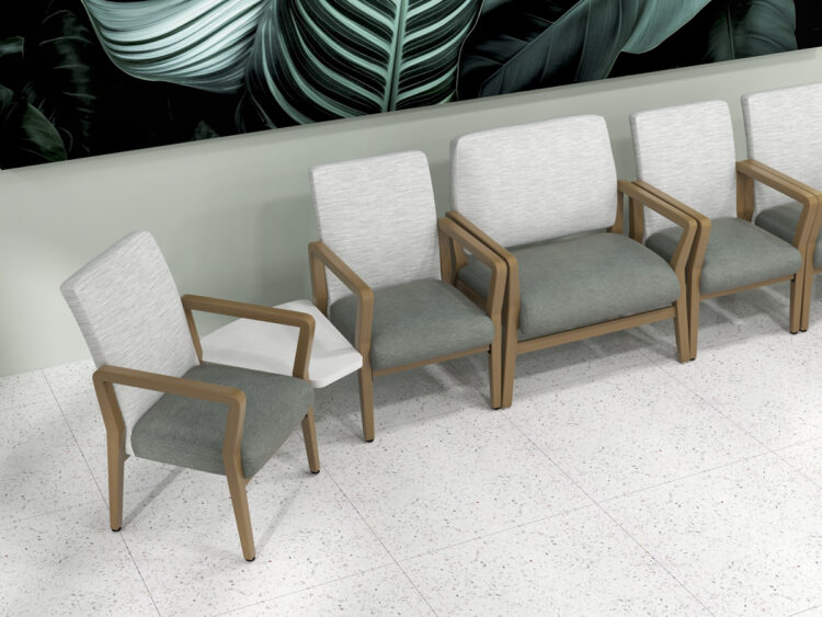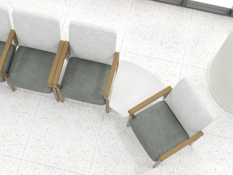 Kwalu Linking Tables add a level of functionality placed inline and in corners between guest and bariatric seating models. Choose square, rectangular, and wedge-shaped tables for visitors to place devices and other items in healthcare wait spaces. The Carrara Wedge is available with optional rounded corners.