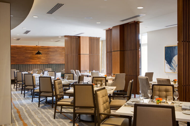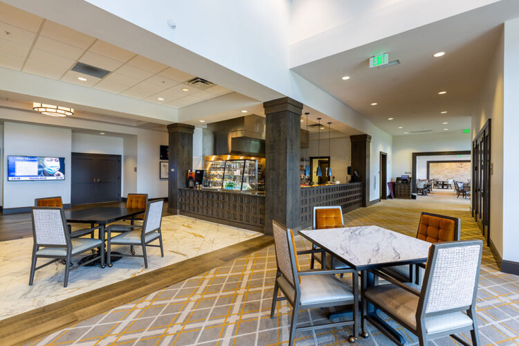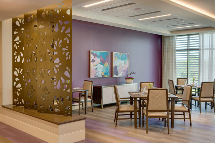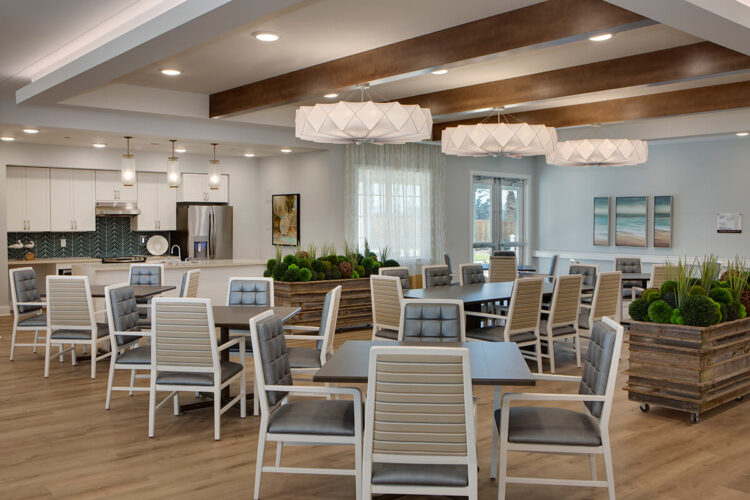 The Altavilla Dining Chair features a tall, tapered back, clean lines, and 2" of padded depth in the back for added comfort. Crafted with Protea™, it’s made to perform in senior living dining environments. Optional side underframe rails and front casters offer added support and mobility.