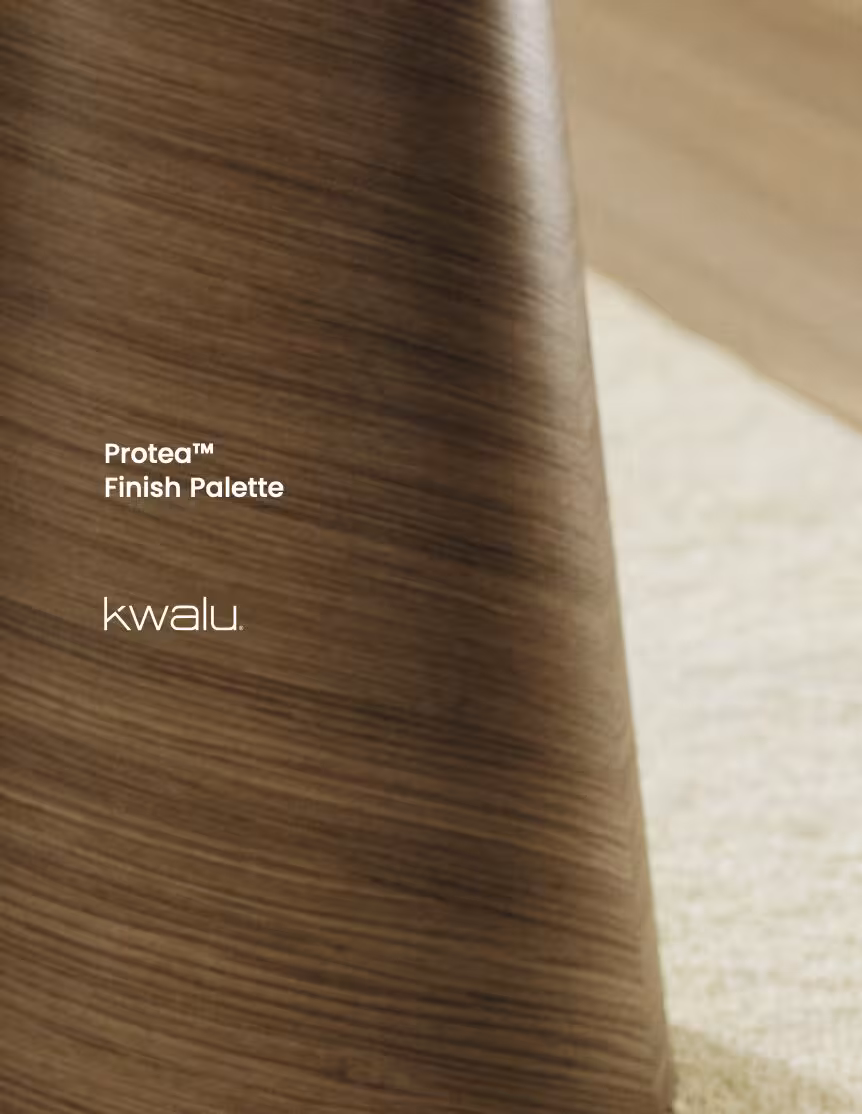 Protea Fusion, primarily used on cabinetry and tables, features the same non-porous polymer in a micro-layered clear form. This version fuses to a pre-printed film, creating intricate grain patterns while retaining the original material’s durability and easy cleanability.
