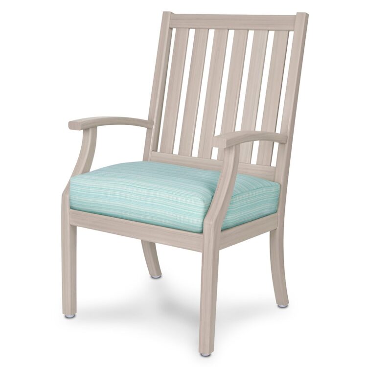 The Arezzo Dining Chair brings comfort and durability to outdoor dining areas. A wide-slat frame provides classic styling, while Kwik Dry cushion construction allows water…