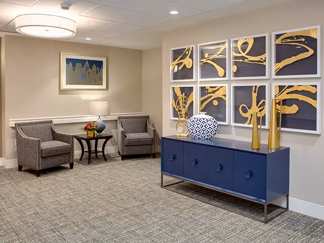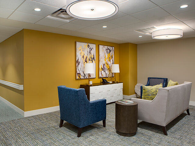 Connecting the buildings on a senior living community with indoor hallways wide enough to accommodate benches, wheel chairs and walkers is important. This resident-centered design feature makes it possible for residents to move effortlessly to meals, events and visit neighbors with ease. Residents use these walkways to rack up daily fitness steps. Seniors do not have to be concerned about inclement weather because the temperature is always constant and the atmosphere is always friendly in these connected hallways.