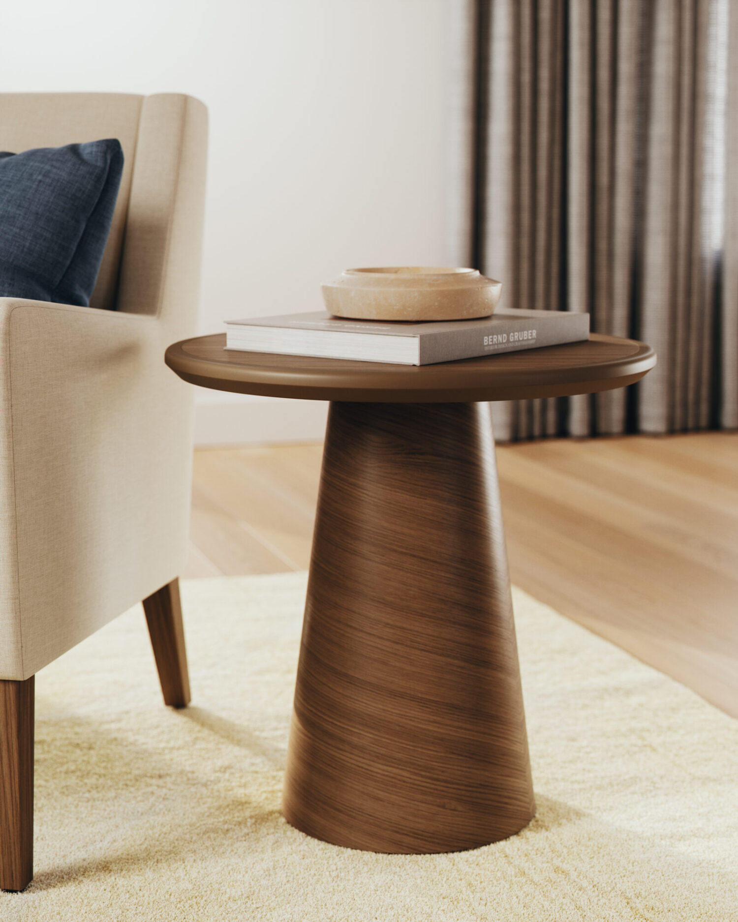 Modern and sculptural, the Palencia Table introduces a distinct design element to the space. Available in both coffee and side table options, its soft round top and tapered base create a clean, modern silhouette. The base is crafted with Protea™ Fusion, combining the rich character of wood with a durable, easy-to-clean surface—ideal for high-traffic environments. The top can either match the base with Protea™ Fusion or create a striking contrast with solid surface options, offering flexibility in design and functionality.