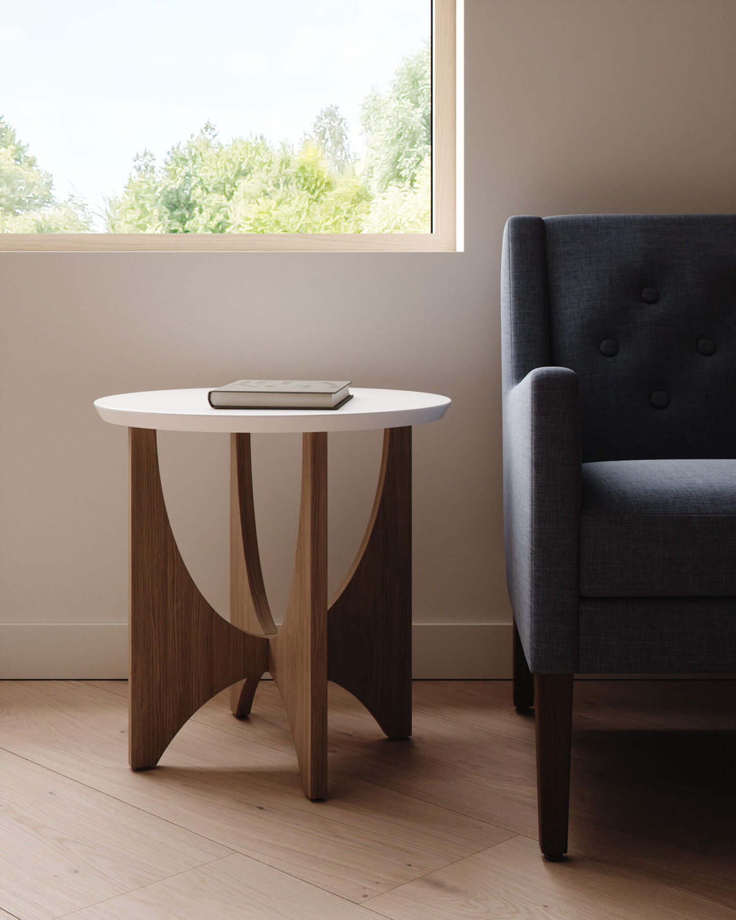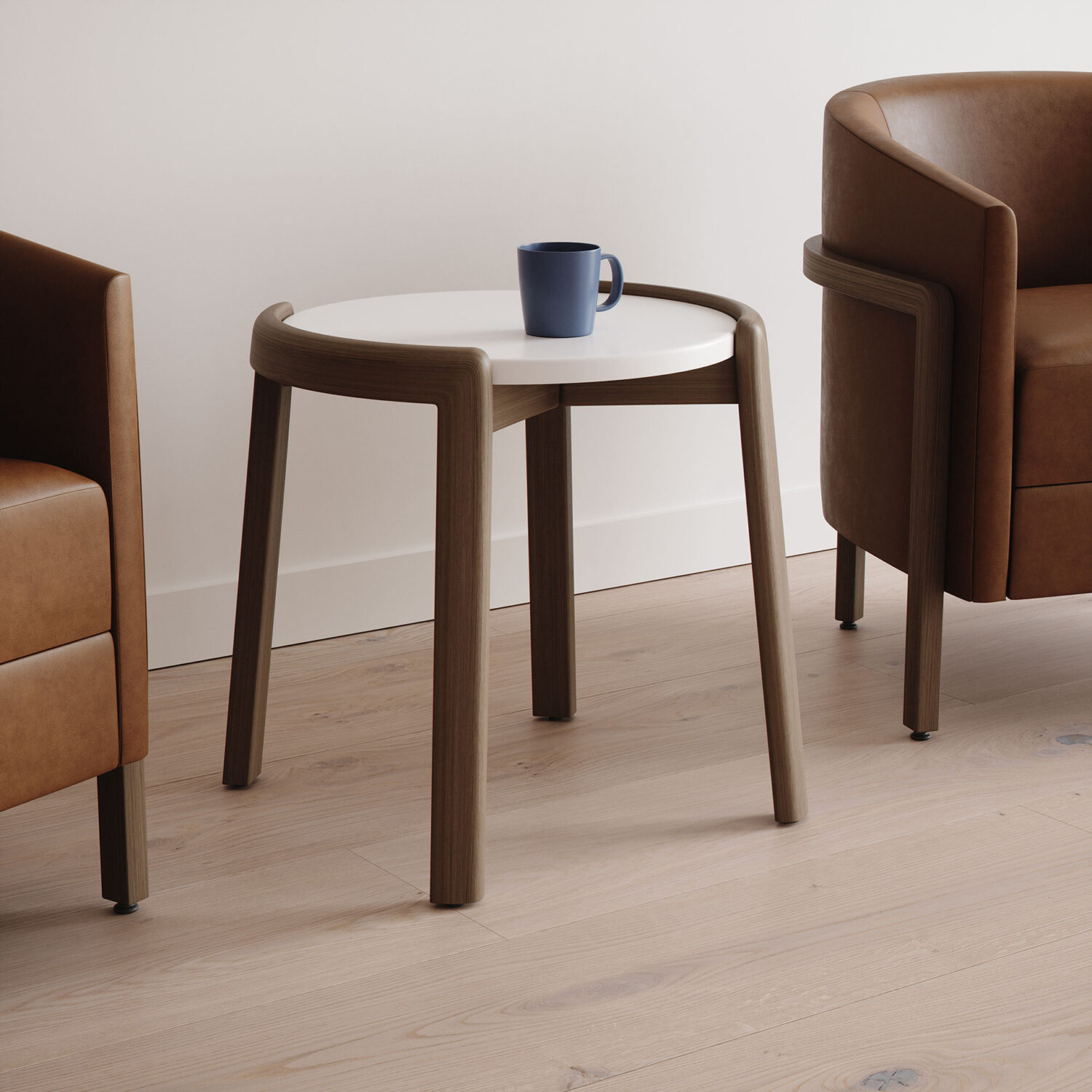 The Keaton Collection features a Protea™ base that wraps and embraces the top, with softened edges that give the table a lighter, more contemporary feel. Compact in scale, it offers top options in Protea™ Fusion or solid surface, allowing the base and top to contrast or coordinate. Available as end and coffee tables.