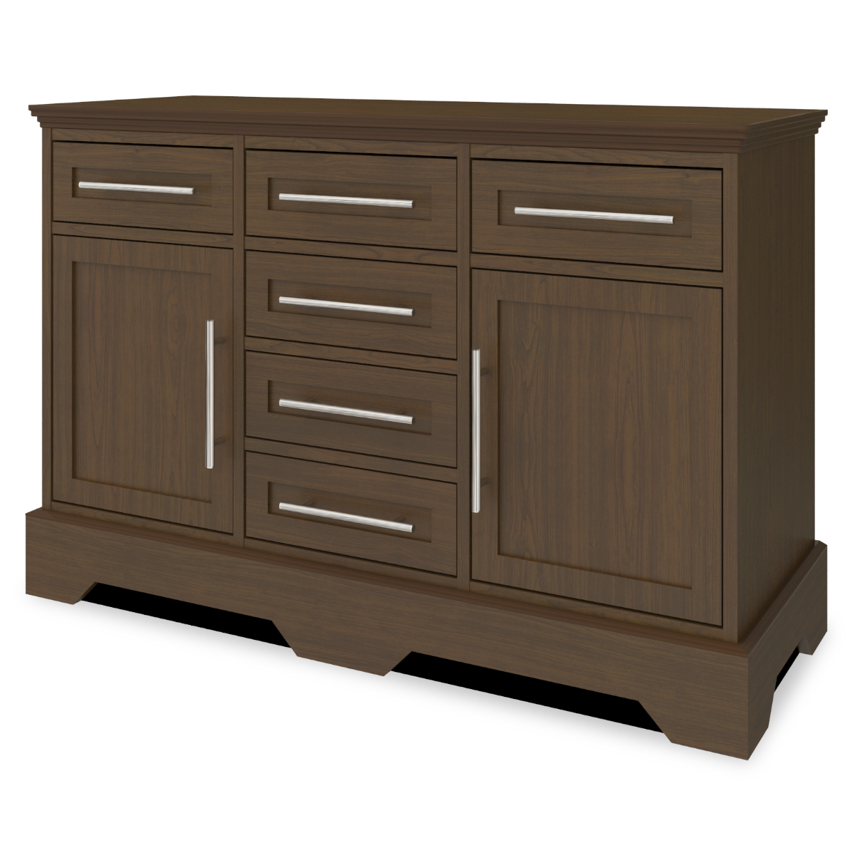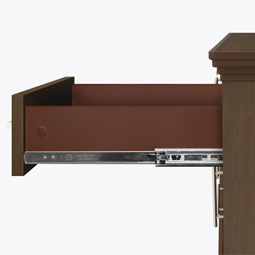 The Dorchester Credenza Station combines traditional detailing with modern architectural lines, while providing plenty of storage. There are three sizes to suit your needs with black panels behind the plinth base, which act as dust traps, for ease of cleaning. There is more than enough storage in the credenza's six drawers and two side cabinets, which contain adjustable shelves.