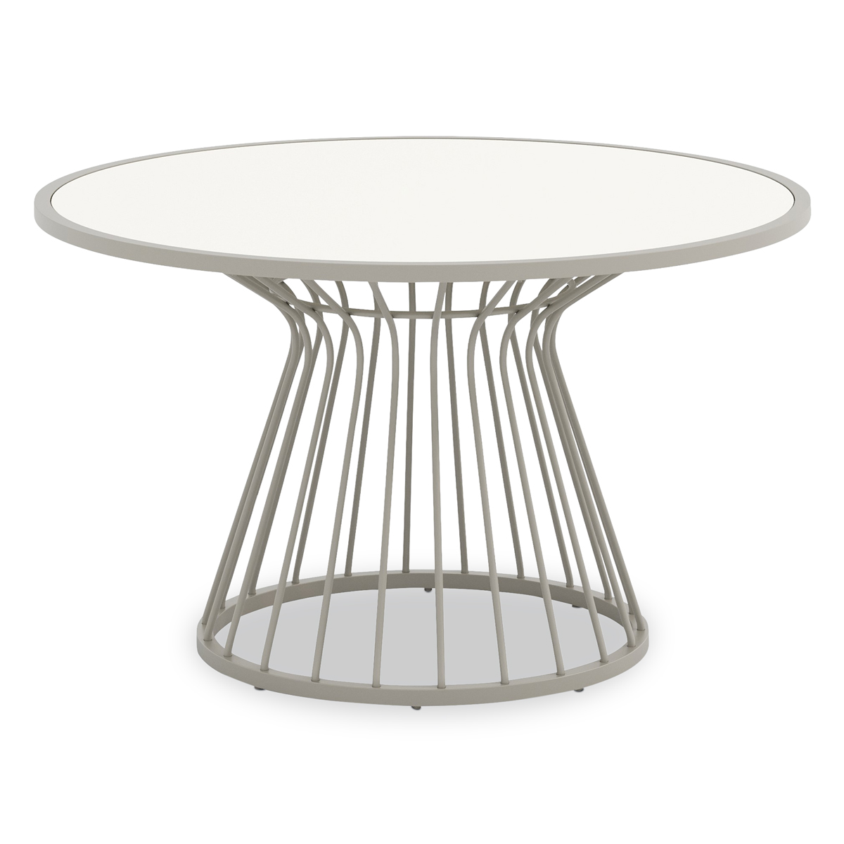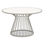 The Kali 48" Dining Table makes a bold statement in outdoor dining spaces with its sculptural base of handcrafted aluminum spokes and lighter-than-air appearance. The round aluminum top offers a practical dining surface while maintaining a modern, airy aesthetic. With a range of Tropitone finishes available, the Kali Dining Table can be coordinated to match your outdoor seating and style.
