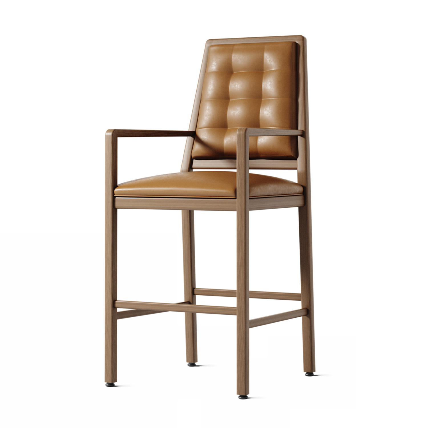 A tall, tapered back and clean, crisp lines underscore the contemporary design aesthetic of the Altavilla Bar Stool. The tufted back upholstery is a luxurious design detail. Available in a counter height model; both stools feature underframe rails on all four sides.