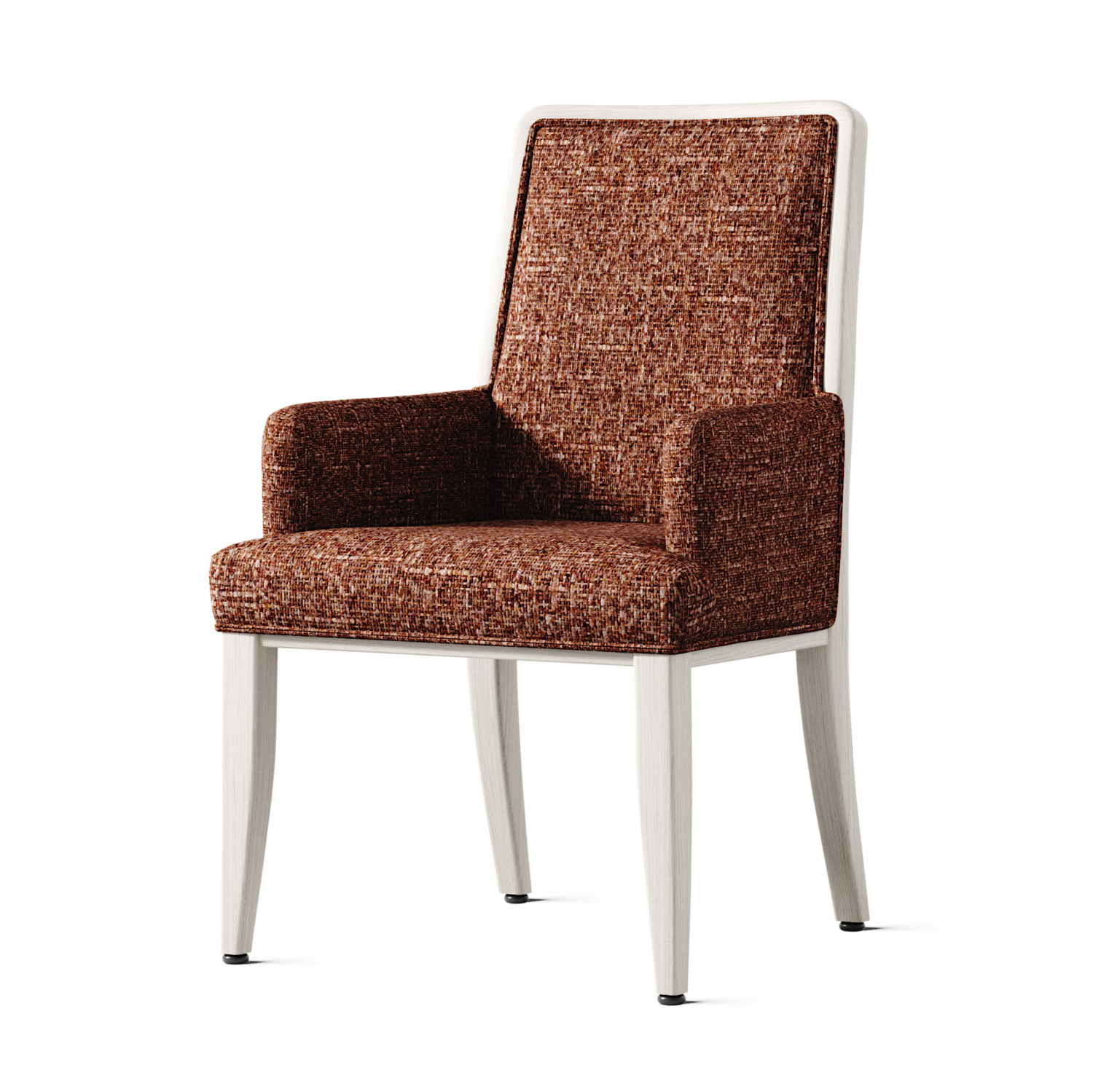 The Ardali Dining Chair offers a tailored look for senior living dining spaces. It features an upholstered arm design, elongated show frame back, and tapered legs for a modern profile. An optional back pull handle allows for easy movement in high-traffic settings.