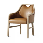 Gela combines sculpted detailing with durable performance. The square front leg transitions into a curved arm and back profile, creating a distinctive yet balanced silhouette. Tapered, angled back legs complete the form. Crafted with Protea™, Gela is built to perform in high-use dining environments. Optional casters are available on models with curved side stretchers, and a handgrip option adds functional flexibility.