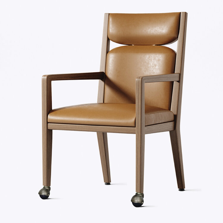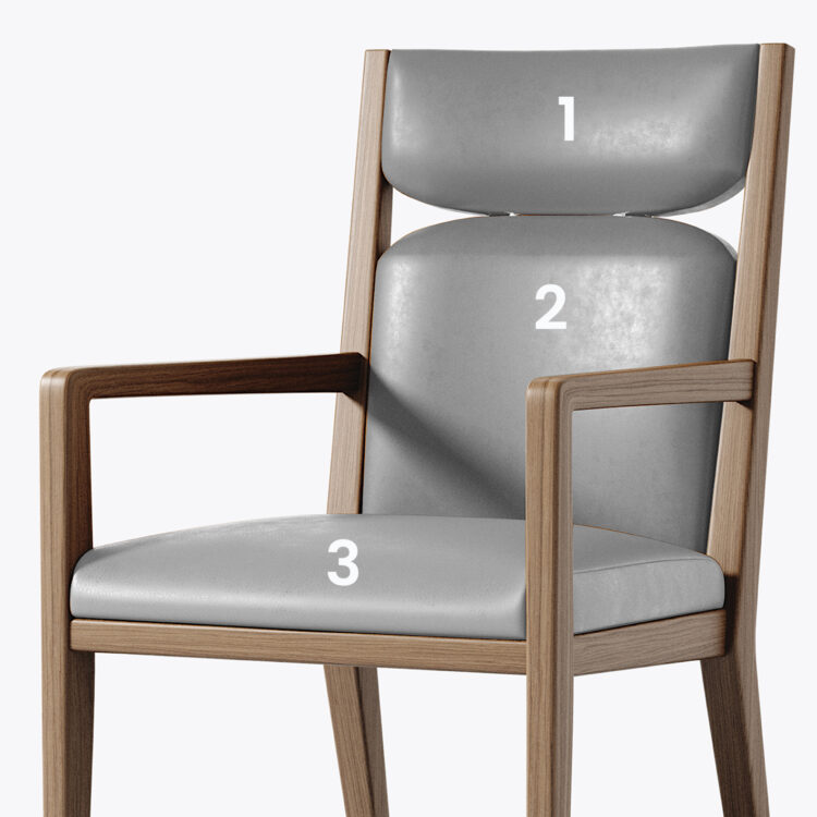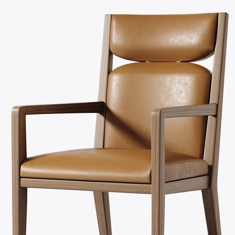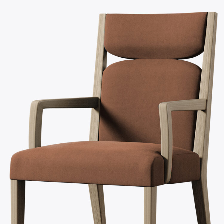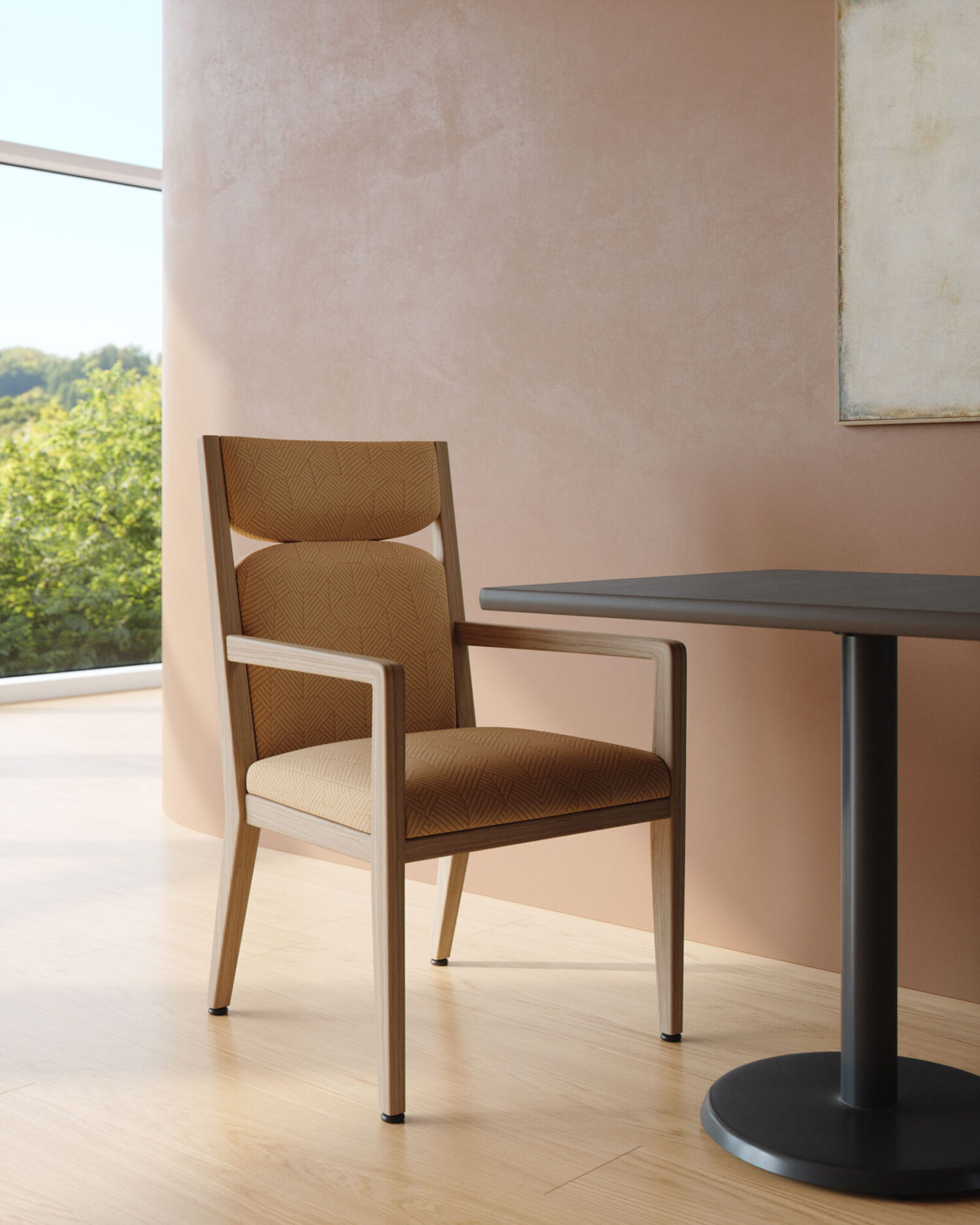 The Lano Dining Chair features a tall back and tapered legs that create a clean, architectural silhouette. Layered upholstery and a curved upper panel bring dimension to the back, while the Protea™ frame delivers the warmth of wood with long-term durability and easy cleanability. Lano adds a composed, contemporary presence to senior living dining spaces.