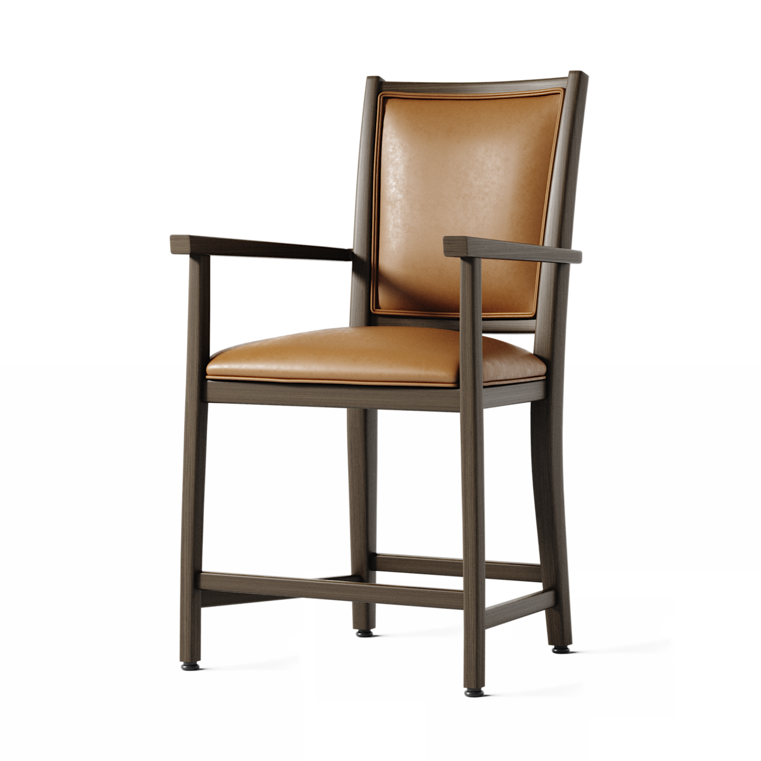 Kwalu’s Pinetta Counter stool features tapered arms and a show frame back. The show frame back with handgrip style is optional. Elegant piping detail is standard on the seat cushion. The height of this stool assures a perfect fit at an eat-in kitchen counter or at high tables in a cafe setting.
