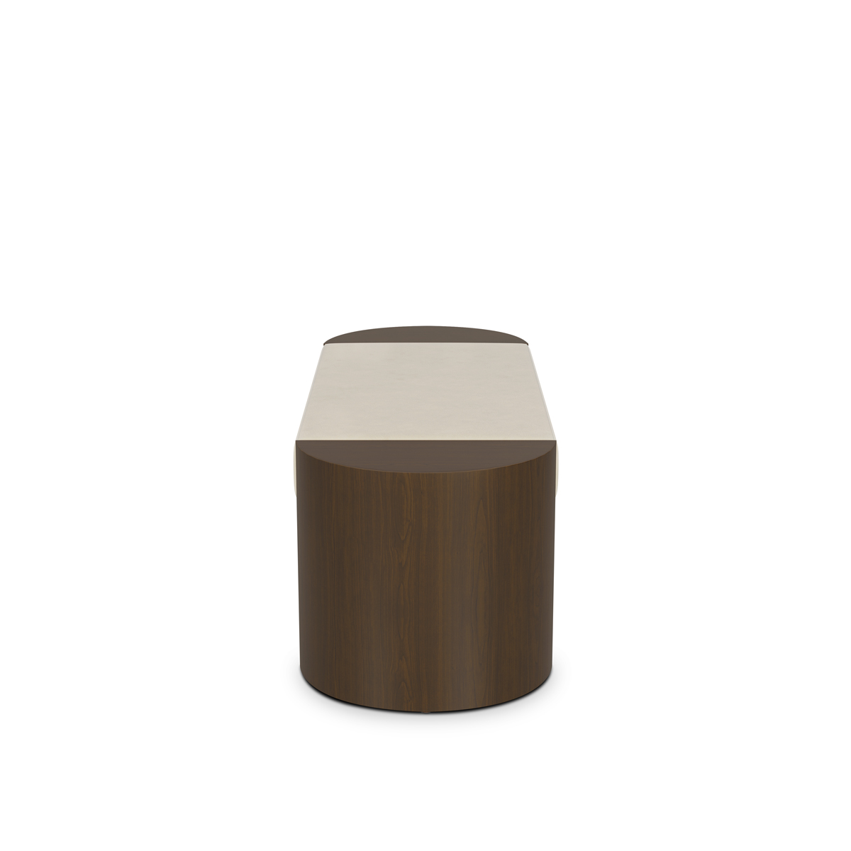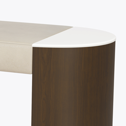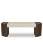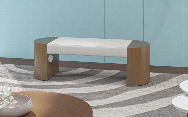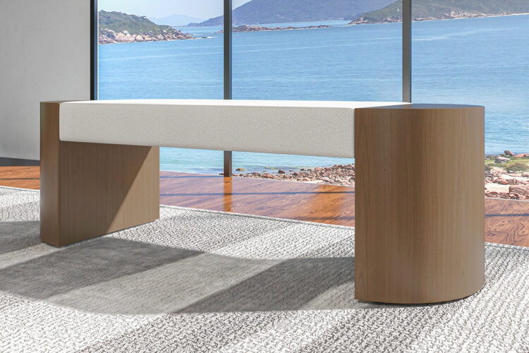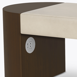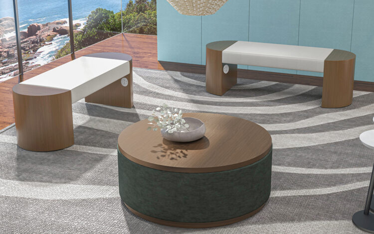 Kwalu’s Tarragona Bench is an oval shaped, highly functional seating option suitable for use in a number of environments. The seat, which comes in two widths, is flanked by substantial curved legs that can also act as side tables. A solid surface top is available for the side tables and it optional. Tarragona is an elegant statement piece in a hallway or lobby.