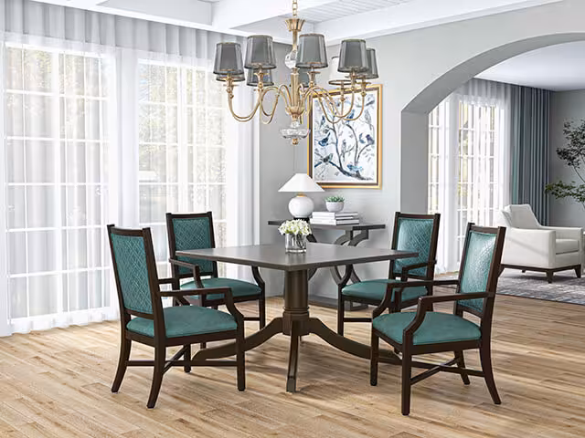 Senior living dining rooms are available for residents who enjoy a more formal setting to have their meals. Kwalu’s Adelfia, with its show frame back is a great seating option for the larger setting. And when the room is being cleaned or if it is used as a multi-purpose space Adelfia has a stacking model.