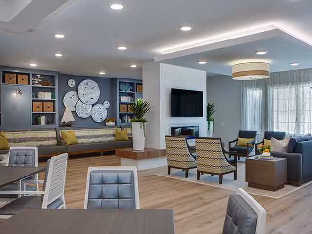 Colors matter but so do the shades and tones. As we age, our vision starts to change. Colors appear to have a grayish tone. It is important to help seniors distinguish between the rooms of their community and color is a great way to do that. A specific and coordinating color pattern can be helpful in wayfinding, especially in hallways without windows. If a bedroom wall is earth toned, the adjoining bath should be a complimentary and comforting shade of blue.